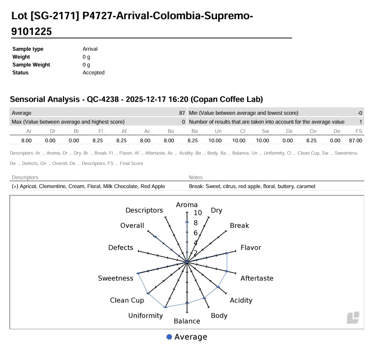 COLOMBIA SUPREMO HUILA 25 KG - 17 BAGS